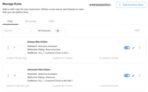 For example, you can create Rules to start an Assistant with a different starting dialog, based on whether the customer is logged in or anonymously browsing your site.