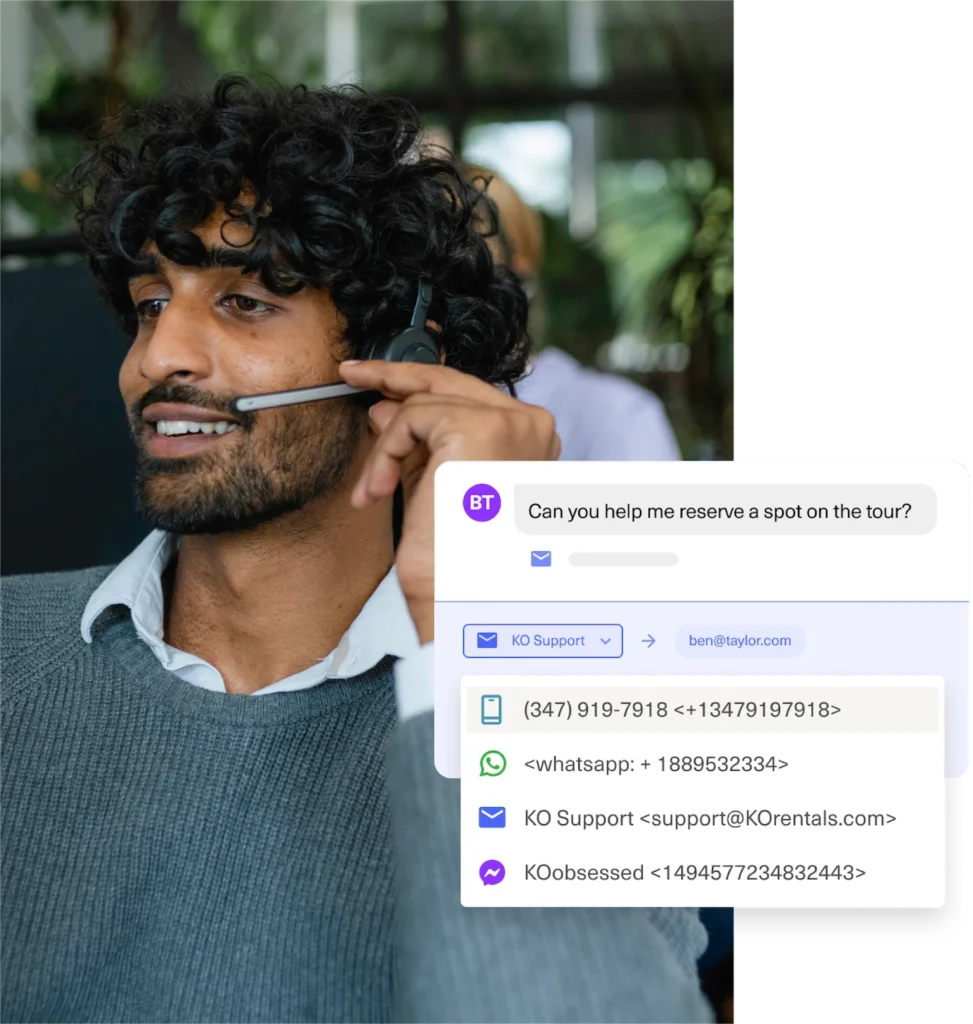 - Unified conversation timeline: This is the core of the platform. It displays every interaction from every channel (email, chat, SMS, social, and voice) in one single, threaded conversation.